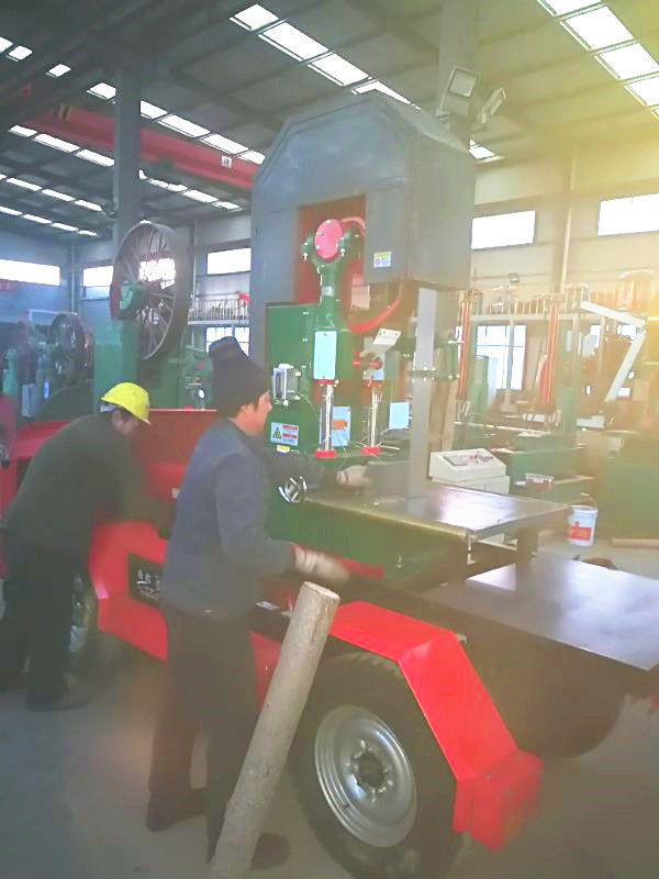 โรงเลื่อยวงเดือนแนวตั้งขับเคลื่อนดีเซลเคลื่อนที่พร้อมโต๊ะ